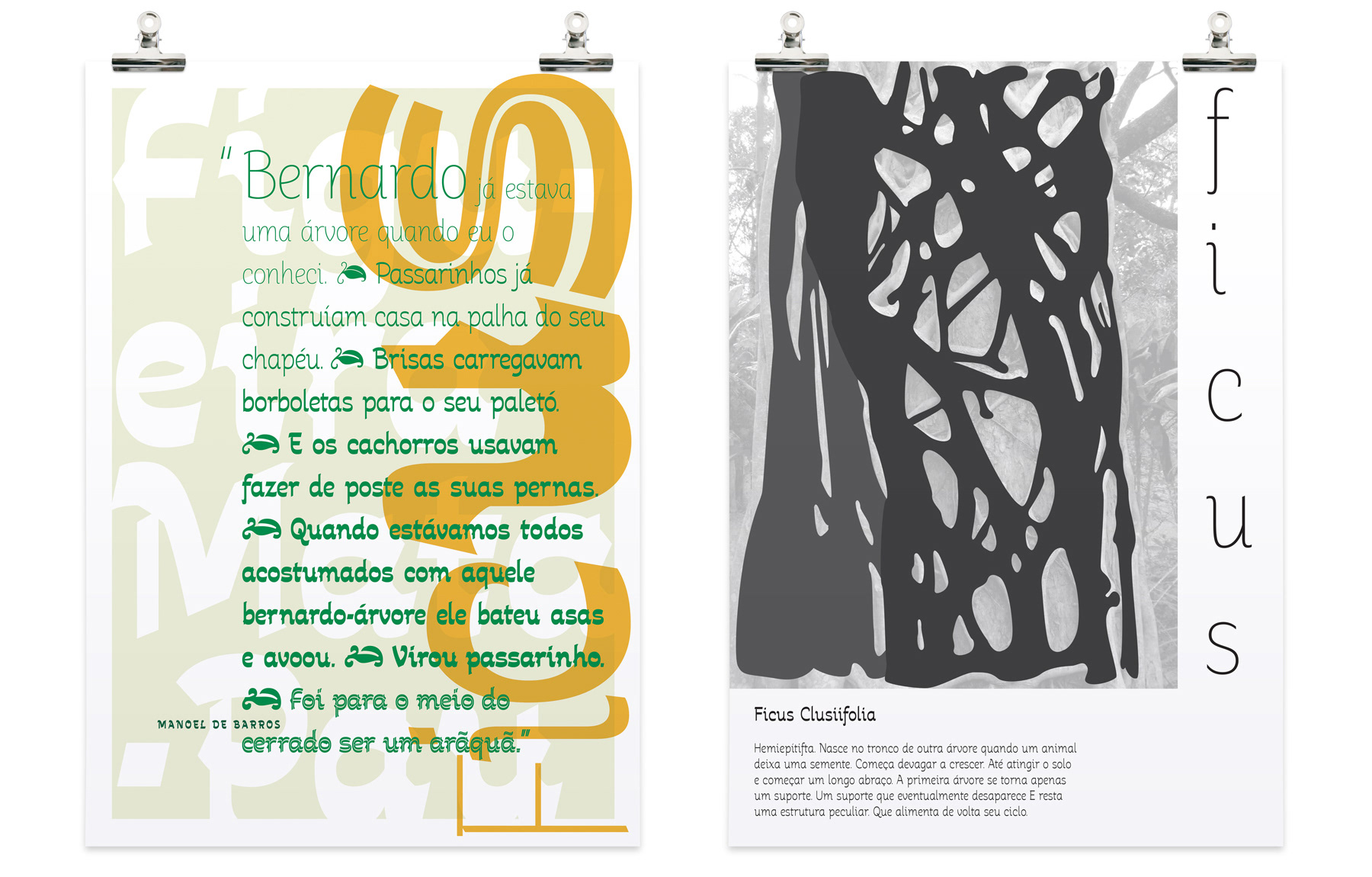 The fleuron had a special part in this project, because it's originally inspired by an european plant, and in this font, it also inspired by a brazilian one – the Figueira Mata-Pau.